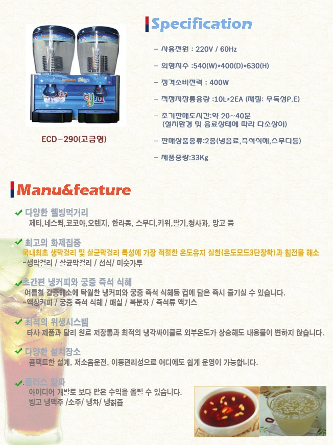 Ç׸ñ/¸ðµ¨¸í SSI-141T »ý»ê´É·Â 14 §¸/h ÀúÀåÅë ¿ë·® 11§¤ ½Ç¸°´õ ¿ë·® 1.4 §¤ ¼ÒºñÀü·Â 1.15 §Ò ¿Ü°üÄ¡¼ö(§®) 396(W)¡¿612(D)¡¿635(H) ¿¬¼Ó ÆÇ¸Å´É·Â(ÁÖÀ§¿Âµµ 32¡É±âÁØ) 6~9 Cone ÃÊ±â ÆÇ¸Å½Ã°£ 5ºÐ~5ºÐ30ÃÊ 2Â÷ÆÇ¸Å µµ´Þ½Ã°£(ÁÖÀ§¿Âµµ 32¡É±âÁØ) 5ºÐ Compressor 3/4 HP Á¦Ç°Áß·® 82 §¸ |